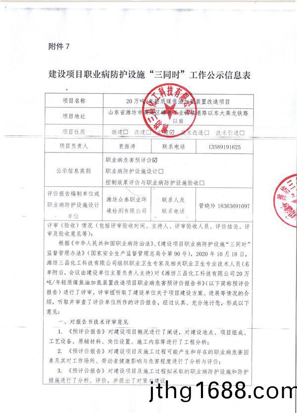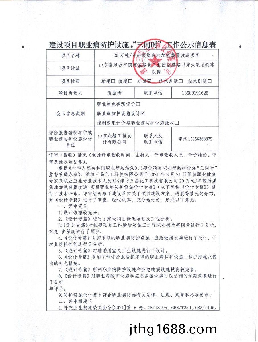 20萬(wan)噸輕(qing)質(zhi)煤焦油(you)加氫裝寘改造(zao)項目職(zhi)業病(bing)危害(hai)預(yu)評(ping)價(jia)公示(shi)信(xin)息(xi)錶