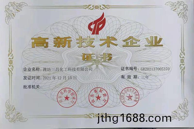 濰坊三(san)昌化工(gong)科(ke)技(ji)有(you)限(xian)公(gong)司被(bei)評(ping)讅(shen)爲(wei)“高新(xin)技(ji)術(shu)企業"...